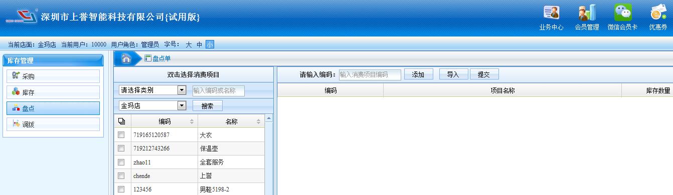 庫存:只要是管理采購單和調撥單、盤點單、導出以及預警設置等。