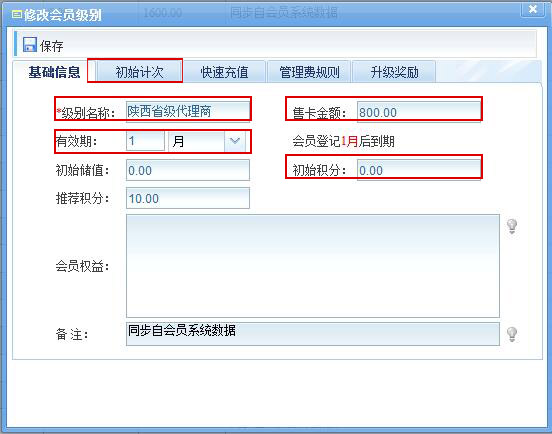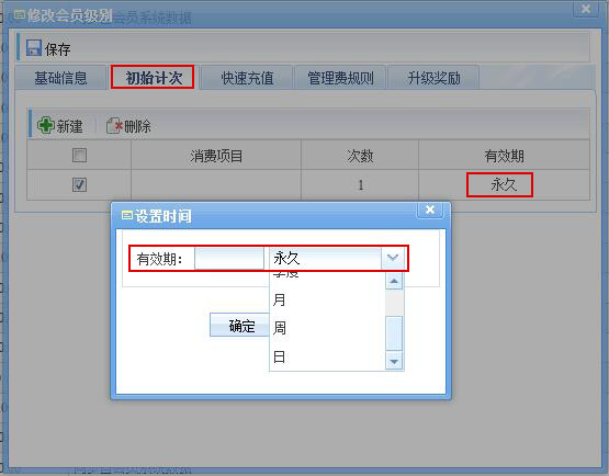 5、初始計次功能,是用于初始用卡會員,可以選有效果,永久、年、月、周、日、季度等。