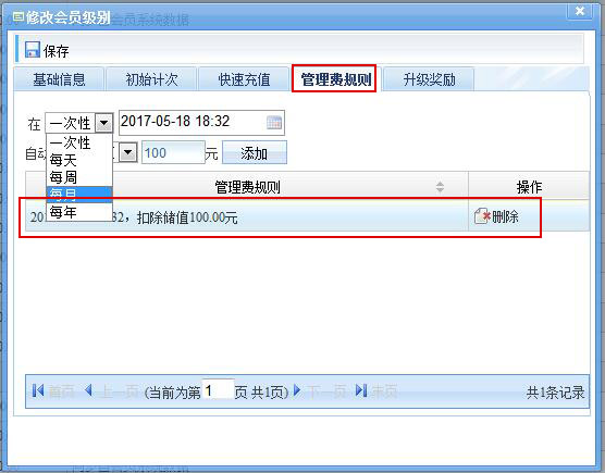 3、設置管理費規則,自動在設定的時間扣除對應積分/儲值,或者積分/儲值清零,可有效消除沉睡會員的儲值與積分,有利于正規的財務處理。