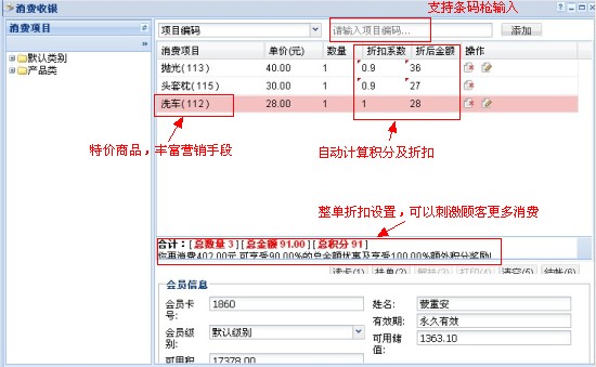 通過消費積分累計,讓會員客戶真正得到實惠,享受到尊貴的增值服務,進而形成忠誠消費,建立穩固客戶資源。 1、快速積分: 適用于無需記錄會員消費明細,直接累加積分的情況 直接輸入消費金額,軟件自動按照積分比例累加積分(或者直接輸入積分數量獲得積分)。